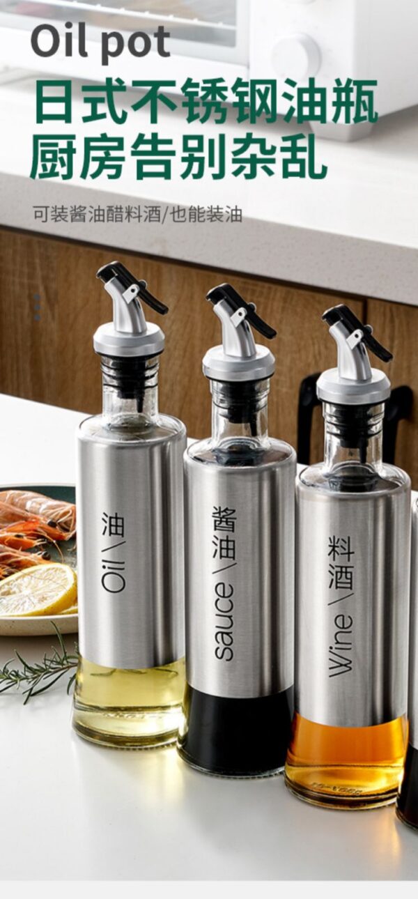 300ML Olive Oil Bottle Kitchen Glass Stainless Steel Leak-Proof Oil Bottle Soy Sauce Vinegar Cruet Bottle Kitchen Cooking Tools