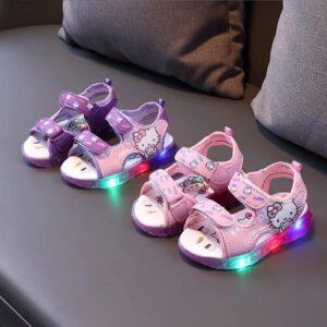 30pcs mixed color and sizes 21-30 Kitty 2024 Summer New Children’s Casual Beach Shoes Girls Sandals LED Light Anti-alkali Kids Outdoor Shoes Cute(below price is 50pcs)