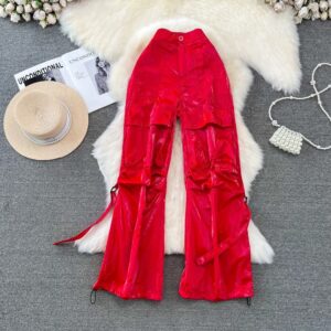 5pcs mixed color and sizes Street High Waist Tape Cross Flap Pocket Side Cargo Pants(below price is 5pcs)