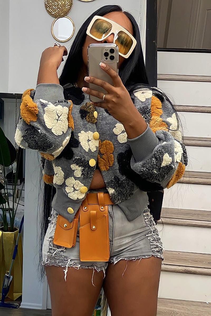 5pcs mixed color and sizes [Waq] Sweet Flower O Sleeve Wrap Cardigan Short Warm Light Gray Coat Autumn 2024 Winter (below price is 5pcs)